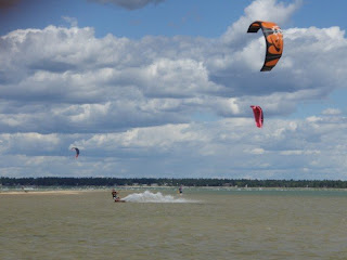 Sunday the storm was suppose to hit so I turned on the Weather Channel to check the waves. I see their reporting from the Frisco pier. So dave, Zack and I head down there for a little kite session. The wind was SE (side on shore) when I was heading down there, but by the time I got to the pier the wind shifted to SSE (straight on shore). We decided to head out to promote REAL. Well it worked Dave and I were interviewed on TWC. Since the wind was not good there we headed to The Cove to meet up with the rest of the crew. It seemed like everyone was there: Greg, Lane, Pam, Tommie, George, Jay, Matt and tons more. I put up a 7m and a surfboard and got blown off it. I then took out a wakeboard and got blown off that. I called it a day and took pictures for the rest of the day. It was another fantastic weekend.