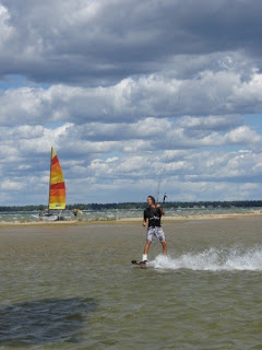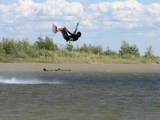 Sunday the storm was suppose to hit so I turned on the Weather Channel to check the waves. I see their reporting from the Frisco pier. So dave, Zack and I head down there for a little kite session. The wind was SE (side on shore) when I was heading down there, but by the time I got to the pier the wind shifted to SSE (straight on shore). We decided to head out to promote REAL. Well it worked Dave and I were interviewed on TWC. Since the wind was not good there we headed to The Cove to meet up with the rest of the crew. It seemed like everyone was there: Greg, Lane, Pam, Tommie, George, Jay, Matt and tons more. I put up a 7m and a surfboard and got blown off it. I then took out a wakeboard and got blown off that. I called it a day and took pictures for the rest of the day. It was another fantastic weekend.