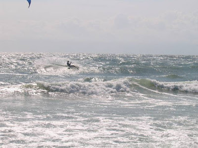 Gabrielle rolled through this weekend. Friday was very light but we tried to kite on the southside but we failed miserably. Saturday was a blast. I started the day off with a downwinder from avon pier to the Hotels. Nick, dave and the guys from Santa Cruz came along for the trip. It was a great downwinder, NE winds at 18-13 and wave that were chest to over head. We were all pretty worked by the end of the down winder. We took a break for lunch/breakfast. Tommie called me up and said they were headed to the southside. We rode down at the washout ocean side. The winds were pretty offshore which made for some very nicely shaped waves. I was very underpowered on a 10m Bularoo and could barley make it up wind so I headed in until Matt was done riding the 12m 08 Havoc and took it for a spin. It’s a great kite and I scored a fun little session on it. The wind started getting flukey so I headed back north and went to Kite Poin tto meet up with some of the REAL Coaches. Nate, Ryan, Steve and JoJo were out killing it at the point. We wound up riding there until dark.